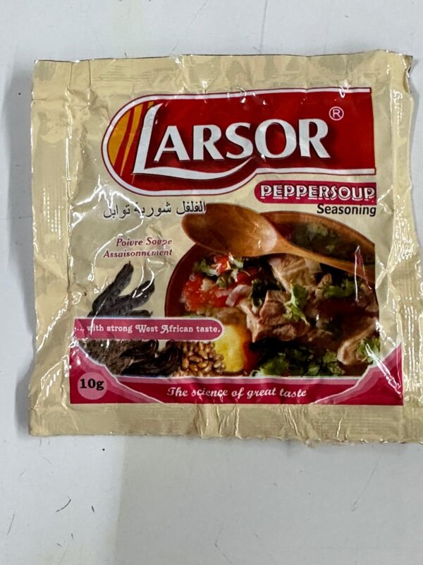 Spice up your favorite dishes with Larsor Peppersoup Seasoning, crafted for that authentic West African flavor. This rich blend of traditional herbs and spices brings warmth, aroma, and depth to classic pepper soup and other African delicacies.